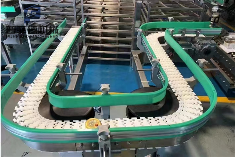 倍速鏈流水線又叫自流式輸送系統,主要應用于各種電子電器、機電等行業生產線。動力驅動部分電機采用臺灣晟邦齒輪減速電機,配套變頻器調速。主架部分:支架采用40*40*2mm鋁型材制作、導軌采用100*118*2mm倍速鏈專用鋁型材。輸送介質;輸送介質采用3倍速鏈條輸送,配套驅動輪、張緊座、導向輪??刂撇糠郑翰捎肞LC程序控制,配套觸摸屏、頂升移栽/平行移栽、阻擋氣缸、腳踏閥等按節拍控制生產。工裝治具采用工裝板。